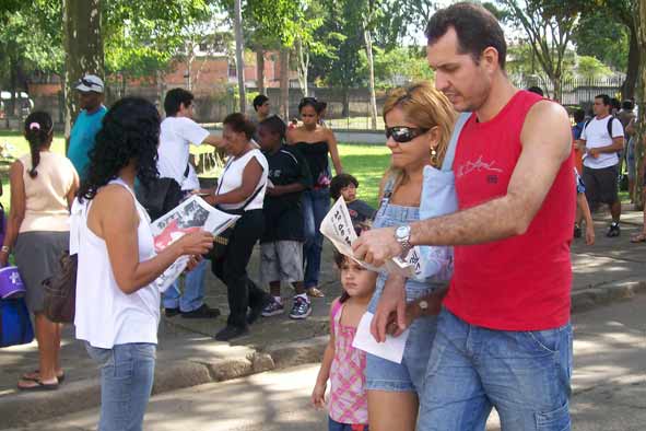 Trabalhadores recebem Manifesto do 1° de Maio de 2009. Quinta da Boa Vista, Rio de Janeiro-RJ