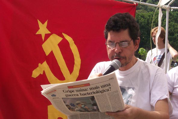 Haroldo de Muora lê Mnifesto do 1° de Maio de 2009, de autoria do Partido Comunista Marxista-Leninista. Quinta da Boa Vista, Rio de Janeiro-RJ